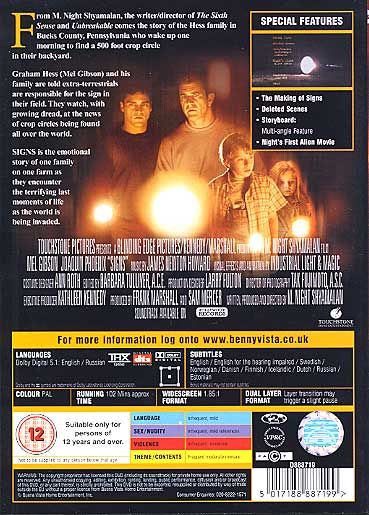 A first rate alien invasion/thriller movie from writer/director M. Night Shyamalan and starring Mel Gibson and Joaquin Phoenix. A former preacher Graham Hess (Gibson) is living in the rural Pennsylvania countryside as a farmer when he starts to experience strange phenomenon after a crop circle is discovered on his farm by his children. Along with his brother Merrill (Phoenix) and his children they begin to realize that an alien force may be preparing to invade the planet. Things may not be as they seem though in a classic Shyamalan twist of an ending after the aliens have invaded. The final question is do you believe in 'Signs'?