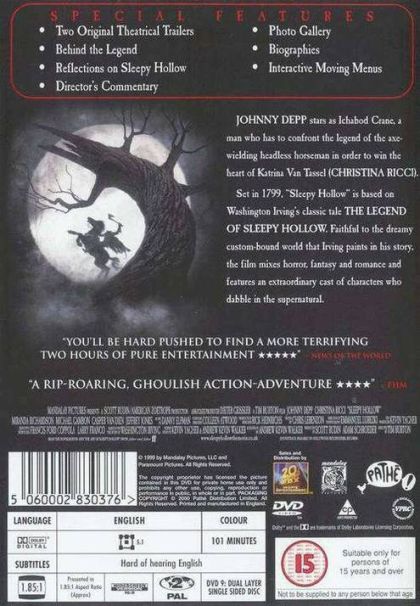 Based on Washington Irving's short story "The Legend of Sleepy Hollow", Johnny Depp portrays Ichabod Crane, a detective from New York City. Crane has been assigned to the quiet country town of Sleepy Hollow to investigate a series of murders. With the help of Katrina Van Tassel (Christina Ricci) Ichabod uncovers a supernatural plot. Someone has used dark magic to raise a headless Hessian horseman to do their evil bidding. Ichabod must work to find a way to appease the horseman and discover the identity of the person controlling the undead assassin.