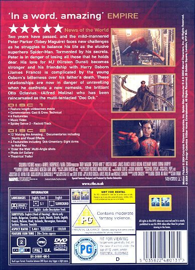 Peter Parker, portrayed by Toby Maguire, is back as Spiderman. In this sequel, Doc Ock is the villain. Doctor Octopus begins the movie as a brilliant scientist Otto Octavius. He is developing a technique to extend the human body appendages in order to perform dangerous tasks. Unfortunately, the experiment goes awry, and this scientist is transformed into the evil Doc Ock. Kirsten Dunst, though billed as the number two in this film, really doesn't play a central role in the plot. She is merely window dressing. Spiderman fights Dr. Octopus in a series of different battles, including a very exciting scene involving a moving train. In the final battle Doc Ock overcomes the voices in his head and does the "right" thing. He commits suicide while saving many lives. Spiderman 2 sets up the next film with Harry, Peter's best friend. Harry is the son of the Green Goblin in Spiderman 1. He finds out that Peter is Spiderman, and also that he killed his father.