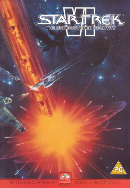 The Klingon moon Praxis explodes, threatening their atmosphere, and the Empire must turn to their sworn enemy, the Federation, for help. James T. Kirk (William Shatner), once again commanding the Enterprise, is assigned to escort the Klingon Chancellor Gorkon (David Warner) to Earth. After a ceremonial dinner the Chancellor’s ship is fired upon apparently by Enterprise, and two Starfleet crewmen assassinate Gorkon during the resulting chaos. Kirk and Doctor McCoy (DeForest Kelley) fail to save Gorkon, and are arrested by the Klingons, tried, and sentenced to life on the frozen asteroid Rura Penthe. Kirk and McCoy attempt to escape but are betrayed by shapeshifter Martia (Iman). Sulu (George Takei), now Captain of the Excelsior, Spock, and the rest of the original crew rescue Kirk and McCoy in the nick of time. Spock (Leonard Nimoy) finds out that it was Klingon General Chang’s (Christopher Plummer )cloaked Bird of Prey that fired on Gorkon. Certain Starfleet officials have been conspiring with Klingons and Romulans to start a war. The Enterprise and the Excelsior then race to intercept General Chang, prevent the assassination of the Federation President (Kurtwood Smith), unmask the conspirators, and save the universe once again.