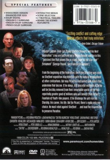 Something is afoot in Federation space. The android Lieutenant Data (Brent Spiner) has apparently malfunctioned, and is disobeying orders from his superiors, revealing the existence of a hidden base to the apparently primitive natives of a planet he is temporarily stationed on. When Captain Picard (Patrick Stewart) and Worf (Michael Dorn) follow him, they discover a planet with a much bigger secret... a fountain of youth. Unfortunately, hostile elements are attempting to move the natives from this paradise, and certain Federation officials seem willing to let them do so, in clear violation of the Prime Directive. The crew of the Enterprise sides with the natives, putting their own futures in doubt. The resolution reveals a surprising relationship between the antagonists and the protagonists, making one reevaluate the meaning of family.