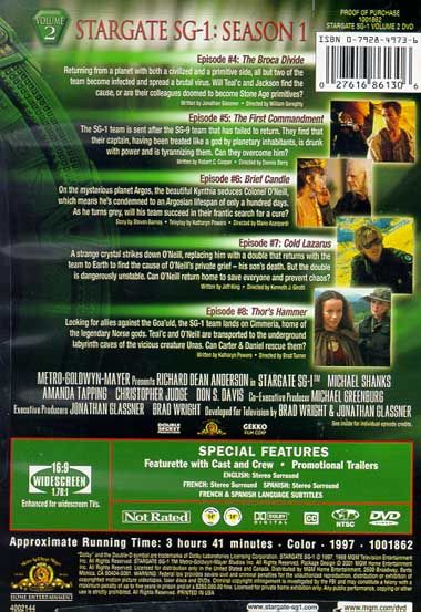 Air Force Cornel Jack O’Neill (Richard Dean Anderson) is the leader of SG-1. He leads his team, Dr Samantha Carter (Amanda Tapping), Daniel Jackson (Michael Shanks) and Teal’c (Christopher Judge), on missions through the Stargate to other planets. Some of the planets that they visit are friendly; other planets do not trust anybody that comes through the Stargate and they try to kill them. Samantha Carter is a major with the Air Force and a brilliant astrophysics. Daniel Jackson is an archaeologist and linguist; he is mostly there to learn about other cultures. Teal’c is a Goa’uld that helped the SG team escape when his master was planning to kill them; he escaped with them and joined the SG team.