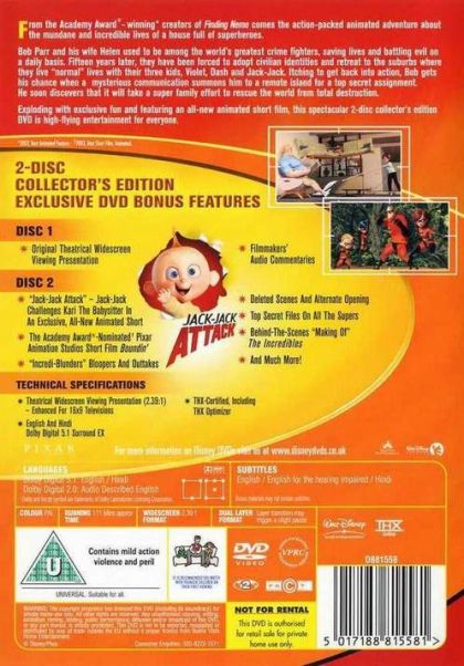 The Incredibles is a fictional animated movie about a family of superheroes. Each of the family members has their own unique superpowers and initially uses them only around each other so as not to arouse suspicion from the community they live in. The superpowers are very unique to each family member and are as follows: Dad has super strength, Mom has body elasticity, the son has super speed, daughter has invisibility and the ability to project a force-field, and the baby's powers, though impressive, are unknown for the majority of the movie. Mr. Incredible has been unhappily working in a cubicle farm for several years but still yearns to fight crime with his friend Mr. Freeze. Although they occasionally try to bust criminals, they have been mostly out of the loop, so to say. One day, Mr. Incredible gets a letter inviting him to come to a secret island. He secretly accepts the invitation and meets his nemesis, who takes him as a prisoner. Mrs. Incredible flies out to the island to save him and her two oldest children stow away with her.