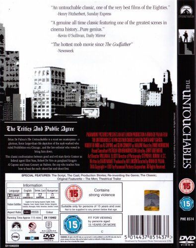 In Prohibition-era Chicago, federal crimefighter Eliot Ness (Kevin Costner) arrives in town intent on destroying an organized crime syndicate run by Al Capone (Robert De Niro). Since the corrupt Chicago police department is on Capone’s payroll, Ness enlists a streetwise beat cop, Jimmy Malone (Sean Connery), a fresh academy cadet, George Stone (Andy Garcia), and a nerdy accountant, Oscar Wallace (Charles Martin Smith) in an unlikely effort to build a case against Capone on the charge of tax evasion. Capone repeatedly thwarts Ness, enforcing his will with brutal violence. Malone warns Ness that he must respond “the Chicago way,” with an escalation of Capone’s methods. Ness, an an idealistic and incorruptible family man, finds himself forced to adopt Capone’s morally questionable tactics in his efforts to take Capone down.