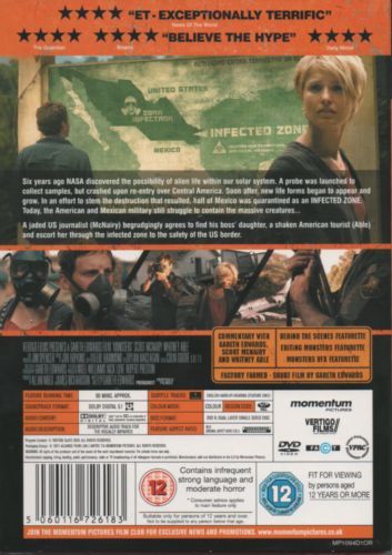 Six years ago NASA discovered the possibility of alien life within our solar system. A probe was launched to collect samples, but crashed upon re-entry over Central America. Soon after, new life forms began to appear and half of Mexico was quarantined as an infected zone. Today, the American and Mexican military still struggle to contain "the creatures," while a journalist agrees to escort a shaken tourist through the infected zone in Mexico to the safety of the U.S. border.