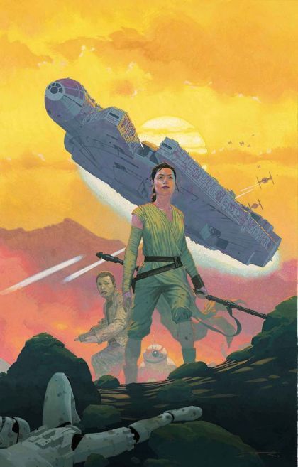 It's true-all of it! The biggest movie of the year jumps from the big screen to the comic book page! It's been three decades since the Rebel Alliance destroyed the Death Star and toppled the Galactic Empire...but now, on the remote planet of Jakku...there is a stirring in the Force. A young scavenger named Rey...a deserting stormtrooper named Finn...an ace pilot name Poe...and a dark apprentice named Kylo Ren...Their lives are about to collide as the awakening begins. Written by Chuck Wendig (STAR WARS: AFTERMATH) and drawn by Luke Ross (HERCULES), take us on our first steps back into the Saga of a lifetime!