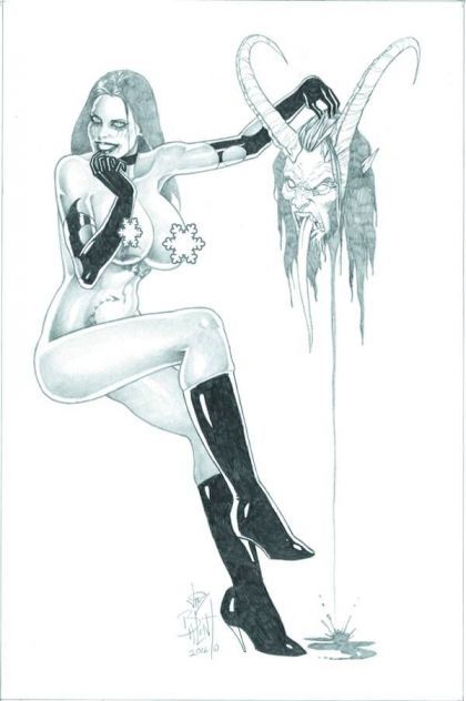 "The Krampus is So Hexed!" The Krampus is so hexed this Yule! This Winter Raven Hex has hunted down the Krampus on his night of mischief and she is armed with forbidden spells! But her spells come with a high price! All hexed up and now it snows! A blizzard of a battle begins!