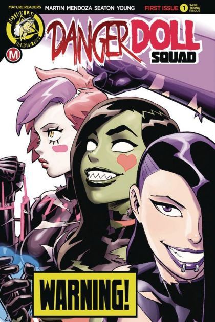 Our three most popular Danger Zone titles - Zombie Tramp, Vampblade, and DollFace - come together to form the all-new Danger Doll Squad! When each girl's deadliest foes merge together, our terrible threesome must enter "the black room," a virtual reality inside cyberspace, to do battle against Necro Magic AI! The biggest Danger Zone crossover event starts here, with covers by the artist of each series (each with their own risqué variant as well)!