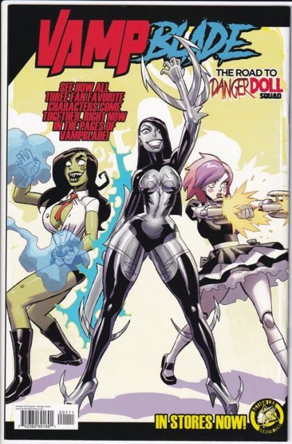 Our three most popular Danger Zone titles - Zombie Tramp, Vampblade, and DollFace - come together to form the all-new Danger Doll Squad! When each girl's deadliest foes merge together, our terrible threesome must enter "the black room," a virtual reality inside cyberspace, to do battle against Necro Magic AI! The biggest Danger Zone crossover event starts here, with covers by the artist of each series (each with their own risqué variant as well)!