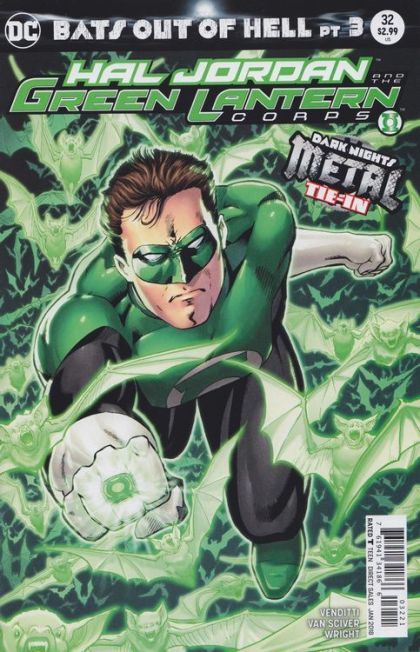 A METAL tie-in! "BATS OUT OF HELL" part two! The Dawnbreaker descends on Coast City, ready to suck its light away before moving on to the rest of our world. Backed up by the power of the Justice League, Hal Jordan stands ready to stop the perverted Lantern-until the Batman Who Laughs steps out of the shadows.
