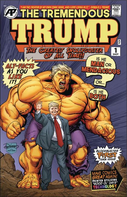 Some people-and you know who we mean-were saying that we couldn't possibly go more classic with our tale of the Tremendous Trump. It's all fake news, so sad. We are bringing you the biggest, most beautiful retro-fied edition of the Tangerine Titan's premiere adventure, in all it's yellowed, off-register glory, now with bonus retro ads and sketches! We're doing the right thing, and it's not good for us, believe-okay, it IS good for us, but it's great for you too! Orange you glad we did it?