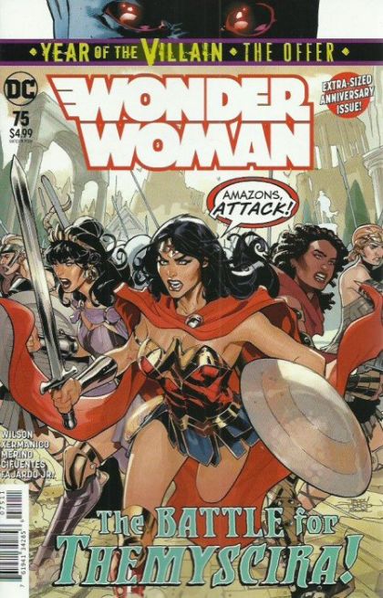 At last, after years of exile: Wonder Woman returns to Themyscira! But in the wake of Ares' escape from his prison, the island is no longer the paradise she remembers... and the Amazons are no longer a united people! Disaster has forced Hippolyta's warriors to choose a deadly new ally, and Wonder Woman is powerless to convince them to turn back to the light! Who among the Amazons could possibly change the course of history? Only one: Diana's long-lost aunt, Antiope! A major figure of the Wonder Woman mythos returns in this extra-sized anniversary issue! Plus, Lex Luthor visits fellow Legion of Doom member Cheetah. He comes bearing gifts: a mythical weapon, one rumored to be able to kill anything-even a god. Or, in Wonder Woman's case, a demi-god.