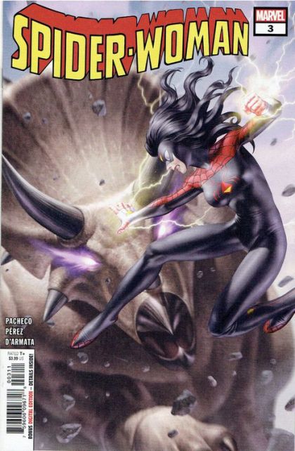 DINO-MIGHT! • With another all-out attack on her client, Spider-Woman is really beginning to regret taking this gig. • As the tables turn yet again, a quick escape leads to the last place on Earth Jess wants to be. • The shocking return of someone from Jess's past ups the ante and throws Spider-Woman's life into chaos! Rated T+
