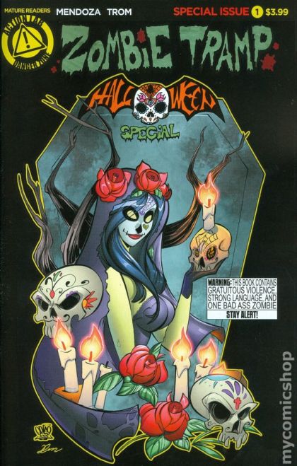 Get set for Hot Habanero Action and Sexy Salsa Sizzle as our favorite Undead Vixen goes south of the border just in time for a Día de Muertos themed Halloween special!! When a troubled young girl visits her sister's grave on All Souls Day, could she rise from the ground and come to her sister's aid? That we don't know. But what we do know is that someone does hear her. Someone that does rise from graves. That someone is Janey Belle, The ZOMBIE TRAMP. Features Dia de los Muertos regular and risqué covers, and Halloween covers by Zombie Tramp creator Dan Mendoza, and Bill McKay (Zombies VS Cheerleaders, Night of the 80s Undead)!