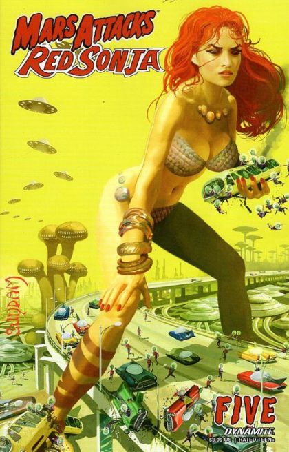 Oh no-looks like the bad guys have won! The good guys are defeated, and the leader of the Martian invasion has declared himself absolute ruler of all of Earth. And Red Sonja? Well, she died last issue, beheaded by her mighty Martian warrior counterpart-- Green Sonja. How is our Hyborian heroine supposed to come back from something like that? HOW INDEED?!?! Join us for the unforgettable conclusion of the most thrilling crossover in the universe!
