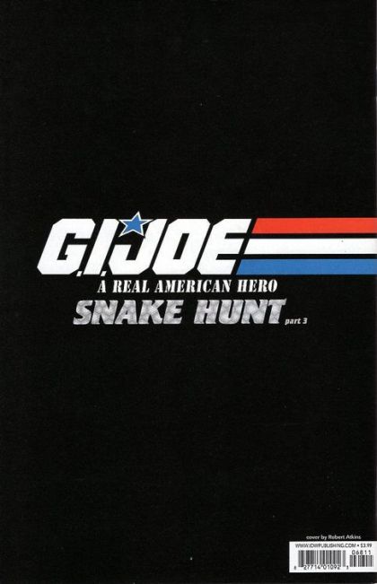 "SNAKE HUNT", Part 3! Can the Joes rescue Sean Collins a.k.a. Snake Eyes from the nefarious clutches of Cobra before it's too late? The battle call has sounded, and it's all hands on deck for both G.I. JOE and Cobra as living legend Larry Hama and fan-favorite artist Robert Atkins continue their massive 10-issue event... featuring EVERY SINGLE MEMBER OF G.I. JOE! * The third chapter of the 10-issue mega-event "SNAKE HUNT"! * Will feature every living Joe from G.I. JOE: ARAH, including never-before-seen origins! * Living legend Larry Hama teams with fan-favorite G.I. JOE: ARAH artist Robert Atkins! * Cover B for issues #266-#270 will be 5 interlocking G.I. JOE: ARAH SERIES A realistic toy homages by artist Jamie Sullivan! * A fantastic new chapter in Snake Eyes lore!