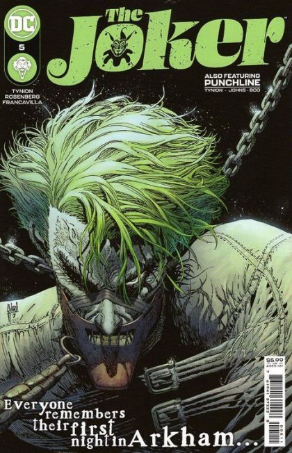 The never-before-seen tale of The Joker's first night in Arkham Asylum is finally revealed! When a lunatic in a clown suit tries to poison Gotham City's reservoir and is placed in Arkham Asylum before his trial, Detective Jim Gordon realizes something's different about this new inmate that could forever change the future of Gotham. Backup: Rising-star artist Sweeney Boo joins the series as things get worse and worse for Punchline and Bluebird. Punchline's prison war against the Queen of Spades escalates, and no prisoner at Blackgate Penitentiary will be exempt from choosing sides. And after barely escaping death at the hands of Punchline's former accomplice, will Bluebird have the will to continue her investigation and find the mysterious woman from Punchline's past who has the answers she's looking for?