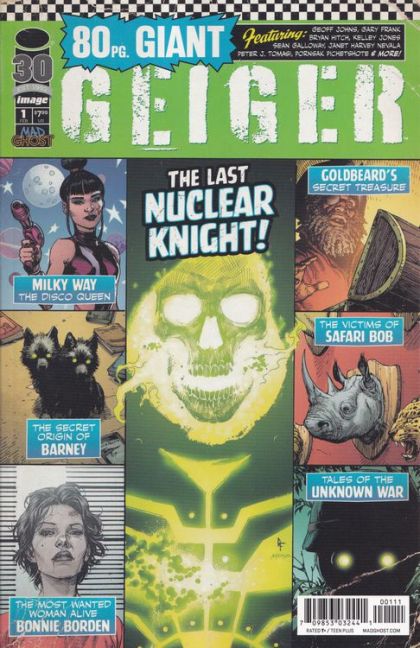 MAD GHOST COMICS presents a MONSTROUS 80 PAGES of all-new stories featuring GEIGER, as well as his allies and enemies! First, in an extra-sized lead story, GEOFF JOHNS & BRYAN HITCH introduce the mysterious man known as REDCOAT and reveal his bizarre ties to the American Revolution, the Unknown War, and Geiger himself. Then, discover the secrets of the Warlords of Las Vegas - Bonnie Borden! Goldbeard! Mr. Karloff! And more! - in a series of tales written and drawn by some of the greatest writers and artists today! Plus, the special origin tale of Geiger's favorite two-headed dog, BARNEY, and a PREVIEW of GEOFF JOHNS & GARY FRANK's new upcoming series: JUNKYARD JOE!