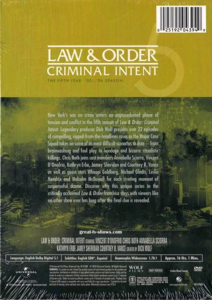 Groundbreaking producer Dick Wolf presides over his popular, Emmy Award-winning Law & Order franchise with Law & Order: Criminal Intent, broadcast on NBC during its first six seasons and then moved to NBC Universal sibling USA Network beginning with season seven. This legal crime drama is unique among the other franchise programs in that it offers an additional dimension by exposing major crimes from the criminal's perspective. Vincent D'Onofrio stars as Det. Robert Goren, an exceptionally bright homicide investigator with well-honed instincts that match up favorably with his criminal quarry. Likewise, his partner, Det. Alexandra Eames (Kathryn Erbe), brings an independence and stylish edge to her work that meshes well in tandem with Goren.