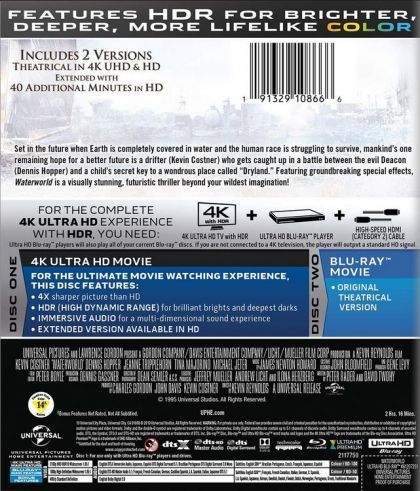 Set in the future when Earth is completely covered in water and the human race is struggling to survive, mankind's one remaining hope for a better future is a drifter (Kevin Costner) who gets caught up in a battle between the evil Deacon (Dennis Hopper) and a child's secret key to a wondrous place called “Dryland.” Featuring groundbreaking special effects, Waterworld is a visually stunning, futuristic thriller beyond your wildest imagination!