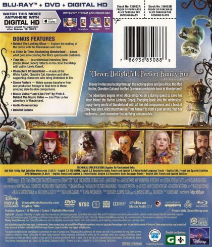 The adventure begins when Alice embarks on a daring quest to save her dear friend the Hatter (Johnny Depp). Plunging back into the whimsical, topsy-turvy world of Wonderland with all her old companions and a host of zany new ones, Alice must take on Time himself to right a past wrong, find her muchness... and remember that nothing is impossible.