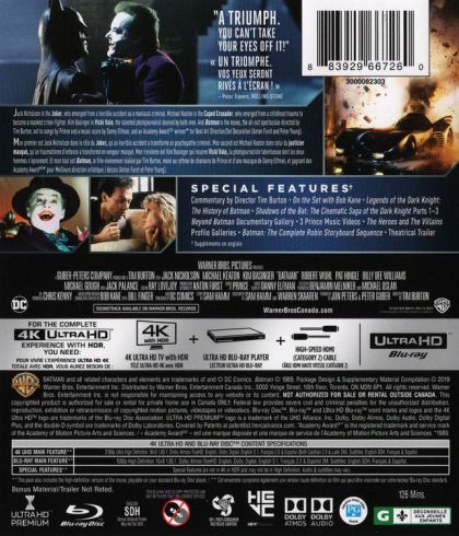 Jack Nicholson is the Joker, who emenged from a horrible accident as a maniacal criminal. Michael Keaton is the Caped Crusader, who emerged from a childhood trauma to become a masked crime-fighter. Kim Basinger is Vicki Vale the talented photojournalist desired by both men. And Batman is the movie, the all-out spectacular directed by Tim Burton, set to songs by Prince and a music score by Danny Elfman, and an Academy Award ® 'many* for Best Art Direction/Set Decoration (Anton Furst and Peter Fauna).