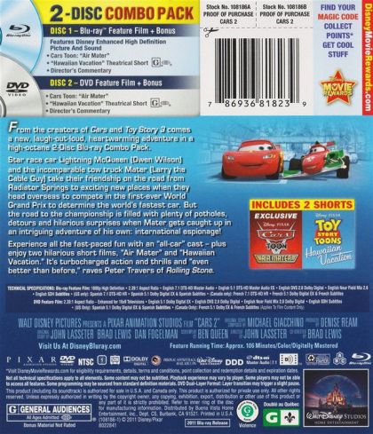 Star race car Lightning McQueen (Owen Wilson) and the incomparable tow truck Mater (Larry the Cable Guy) take their friendship on the road from Radiator Springs to exciting new places when they head overseas to compete in the first-ever World Grand Prix to determine the world's fastest car. But the road to the championship is filled with plenty of potholes, detours and hiliarious surprises when Mater gets caught up in an intriguing adventure of his own: international espionage!
