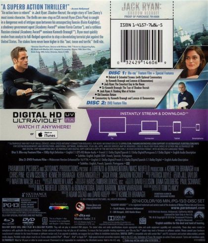 "An action hero is reborn!" in Jack Ryan: Shadow Recruit, origin story of Tom Clancy's most iconic character. The thrills are non-stop as CIA recruit Ryan (Chris Pine) is caught in a dangerous web of intrigue and espionage spun between a shadowy government agent (Academy Award-Winner Kevin Costner), his unsuspecting fiancee (Keira Knightley) and a fearless Russian power broker (Kenneth Branagh). Jack must quickly evolve from soldier to analyst to full-fledged operative to stop a devastating terrorist plot against the United States. The stakes have never been higher in this "taut, tense and terrific" thrill ride.