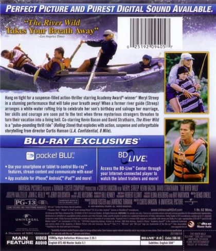 While on a family vacation, Meryl Streep takes on a pair of armed killers (led by Kevin Bacn) while navigating a spectacularly violent river.