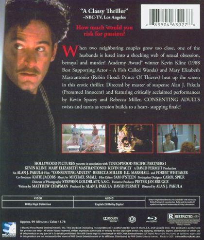 Richard and Priscilla Parker (Kevin Kline and Mary Elizabeth Mastrantonio) are an ordinary suburban couple whose lives are invaded and rocked by their hedonistic, secretive new neighbors, Eddy and Kay Otis (Kevin Spacey and Rebecca Miller). Spacey, in one of his first feature roles, is charismatic as the evil neighbor, with an appeal worthy of an Alfred Hitchcock villain.