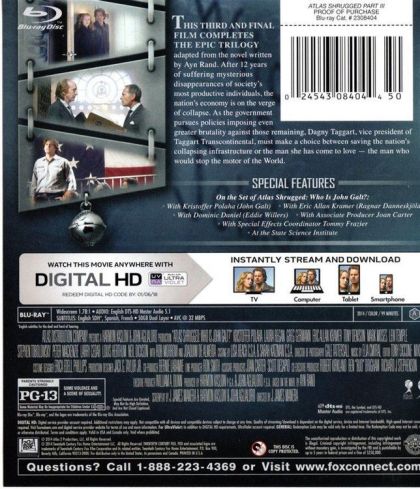This third and final film completes the epic trilogy adapted from the novel written by Ayn Rand. After 12 years of suffering mysterious disappearances of society's most-productive individuals, the nations economy is on the verge of collapse. As the government pursues policies imposing even greater brutality against those remaining, Dagny Taggart, Vice President of Taggart Transcontinental, must make a choice between saving the nations collapsing infrastructure or the man she has come to love - the man who would stop the motor of the World.