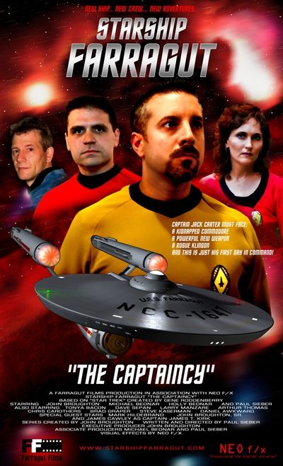 Starship Farragut is an independent film series based on the original series of Star Trek. Starship Farragut is based on the crew of the U.S.S. Farragut, a Constitution Class Starship (NCC-1647) commanded by Captain John T. Carter, and takes place during the time of legendary Captain James T. Kirk of the Starship Enterprise (NCC-1701).