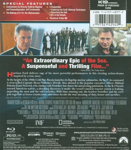 At the height of the 1960's Cold War, Russia launches its flagship nuclear submarine, the K-19. In command is iron willed Captain Alexei Vostrikov (Ford). Also aboard is the popular executive officer Mikhail Polenin (Liam Neeson), who clashes with Vostrikov but shares his unwavering patriotism. As the K-19 heads toward American waters, a shocking discovery is made: the vessel's nuclear reactor system is leaking, imperiling the men and the sub's missiles. With time running out, the fearless Vostrikov and his crew join together as brave countrymen who must decide the true meaning of duty, honor and sacrifice.