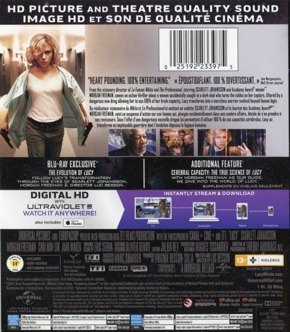 From the visionary director of La Femme Nikita and The Professional, starring Scarlett Johansson and Academy Award winner Morgan Freeman, comes an action-thriller about a woman accidentally caught in a dark deal who turns the tables on her captors. Altered by a dangerous new drug allowing her to use 100% of her brain capacity. Lucy transforms into a merciless warrior evolved beyond human logic.