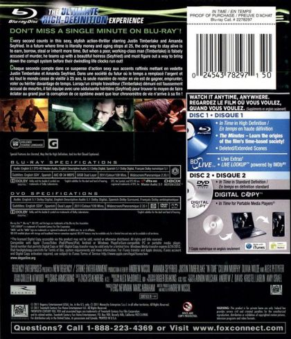 In the not-too-distant future, the aging gene has been switched off. To avoid overpopulation, time has become the currency and the way people pay for luxuries and necessities. The rich can live forever, while the rest struggle to negotiate for their immortality. A poor young man who suddenly comes into a fortune of time finds himself on the run from a corrupt police force known as the "time keepers".