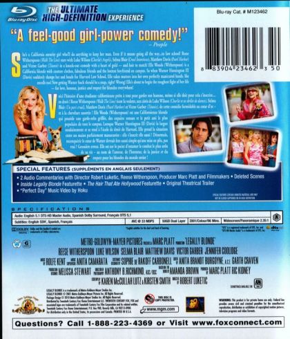 She's a California sorority girl who'll do anything to keep her man. Even if it means going all the way to law school! Reese Witherspoon (Election) stars with Luke Wilson (Charlie's Angels), Selma Blair (Cruel Intentions), Matthew Davis (Pearl Harbor) and Victor Garber (Titanic) in a knock-out comedy with a heart of gold - and hair to match! Elle Woods (Witherspoon) is a California blonde with couture clothes, fabulous friends and the hottest boyfriend on campus. So when Warner Huntington III (Davis) suddenly dumps her and heads for Harvard Law School, Elle takes matters into her own perfectly manicured hands. She enrolls too! Now getting Warner back should be a snap, right? Wrong! Elle's about to begin the toughest fight of her life - for love, honor, justice and respect for blondes everywhere.