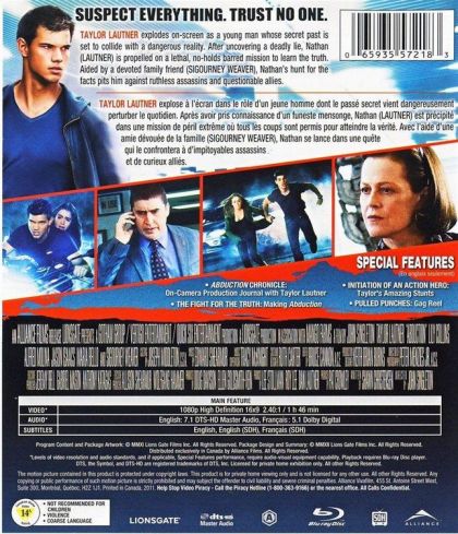 TAYLOR LAUTNER explodes on-screen as a young man whose secret past is set to collide with a dangerous reality. After uncovering a deadly lie, Nathan (Lautner) is propelled on a lethal, no-holds-barred mission to learn the truth. Aided by a devoted family friend (Sigourney Weaver), Nathan's hunt for the facts pits him against ruthless assassins and questionable allies.