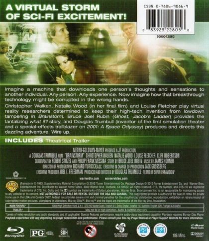 Christopher Walken, Natalie Wood (in her final film) and Louise Fletcher play virtual reality researchers determined to keep their high-tech invention from lowdown tampering in Brainstorm. Bruce Joel Rubin (Ghost, Jacob's Ladder) provides the tantalizing what if? story, and Douglas Trumbaull (inventor of the first simulation theater and a special-effects trailblazer on 2001: A Space Odyssey) produces and directs this dazzling adventure. Wire Up.