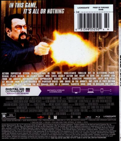 Action superstar Steven Seagal stars in this sexy, high-stakes thriller set in glittering Paris. Seagal plays Decker, an ex-DEA agent who takes deadly action one night to save the alluring Lisa from an abusive boyfriend. She approaches Decker with a seductive proposition: help her steal $2 million from a car guarded by Parisian police and share in the bounty. But even if they outrun the cops, can they outgun the hit squads sent by a furious, sadistic drug lord to reclaim the loot?
