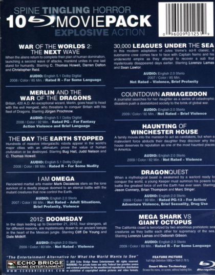 War Of The Worlds 2: The Next WaveWhen the aliens return to complete their plan of human domination, launching a second wave of attacks, mankind unites in one last stand for humanity.Merlin And The War Of The DragonsBritain, 420 A.D. An exceptional wizard, Merlin, goes head to head with the evil Hengest, who threatens to conquer Britain with his fleet of Dragons.The Day The Earth StoppedHundreds of massive intergalactic robots appear in the world's major cities with an ultimatum: prove the value of human civilization or be destroyed.I Am OmegaRenowned martial arts master Mark Dacascos stars as the lone survivor of a deadly plague doomed to an eternal battle with the mutant creatures that now control the Earth.2012: DoomsdayIn the days leading up to December 21, 2012, four strangers, all for different reasons, are mysteriously drawn to an ancient temple in the heart of the Mexican jungle.30,000 Leagues Under The SeaIn this modern adaptation of Jules Verne's sci-fi classic, a submarine crew comes face to face with Captain Nemo and his underworld empire as they attempt to recover a sub that mysteriously disappeared days earlier.Countdown ArmageddonA journalist searches for her daughter as a series of catastrophic disasters push a destabilized society to the brink of global war.Haunting Of Winchester HouseA family moves into the mansion to act as caretakers, but when a malevolent force abducts their daughter they discover why the house deserves its reputation as one of the most haunted places in America.DragonquestWhen a mythological beast is awakened by a warlord ready to conquer the world, a young Keeper must summon his powers to battle the greatest force of evil the Earth has ever seen.Mega Shark Vs. Giant OctopusThe California coast is terrorized by two enormous prehistoric sea creatures as they battle each other for supremacy of the sea.