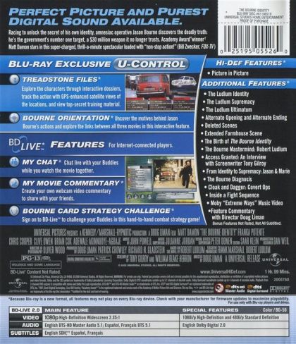 Racing to unlock the secret of his own identity, amnesiac operative Jason Bourne discovers the deadly truth: he's the government's number one target, a $30 million weapon it no longer trusts. Academy Award winner Matt Damon stars in this super-charged, thrill-a-minute spectacular loaded with "non-stop action!" (Bill Zwecker, FOX-TV)