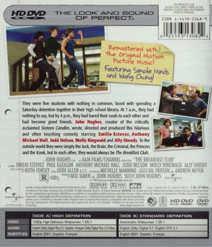 They were five students with nothing in common, faced with spending a Saturday detention together in their high school library. At 7 a.m., they had nothing to say, but by 4 p.m. they had bared their souls to each other and become good friends. John Hughes, creator of the critically acclaimed Sixteen Candles, wrote, directed and produced this hilarious and often touching comedy starring Emilio Estevez, Anthony Michael Hall, Judd Nelson, Molly Ringwald and Ally Sheedy. To the outside world they were simply the Jock, the Brain, the Criminal, the Princess and the Kook, but to each other, they would always be The Breakfast Club.
