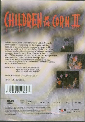 Tabloid writer, John Garrett travels to Gatlin, Nebraska for a career-boosting scoop on the strange, cult-like murders of the town's adults - reportedly committed by their own children! It isn't long before Gatlin's orphaned children, are lured into the vast cornfields that surround the sleepy town, by an evil force known to them as "He Who Walks Among the Rows." As adults start dying horrible, violent deaths, Garrett and local anthropologist Frank Red Bear, discover the town's secret, a volatile corn mold, responsible for the children's sudden delusional and murderous behavior.