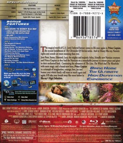 The magical world of C.S. Lewis' beloved fantasy comes to life once again in Prince Caspian, the second installment of The Chronicles of Narnia series. Join Peter, Susan, Edmund, Lucy, the mighty and majestic Aslan, friendly new Narnian creatures and Prince Caspian as they lead the Narnians on a remarkable journey to restore peace and glory to their enchanted land. Continuing the adventure of The Lion, the Witch and the Wardrobe with more magic and a brand-new hero, Prince Caspian is a triumph of imagination, courage, love, joy and humor your whole family will want to watch again and again.