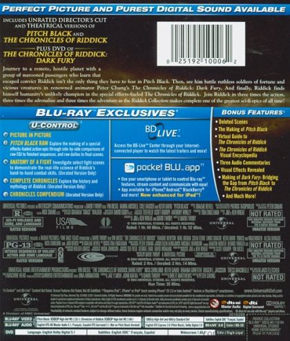 The Chronicles of Riddick (Synopsis)Click Here!Vin Diesel (xXx, The Fast and the Furious) stars in this electrifying special-effects-fueled action spectacular! After years of outrunning ruthless bounty hunters, escaped convict Riddick suddenly finds himself caught between opposing forces in a fight for the future of the human race. Now, waging incredible battles on fantastic and deadly worlds, this lone, reluctant hero will emerge as humanity's champion - and the last hope for a universe on the edge of annihilation. Powered by groundbreaking visual effects and pulse-pounding, thrill-a-minute action, The Chronicles of Riddick is "a roller coaster ride that leaves you kicking and screaming for more!