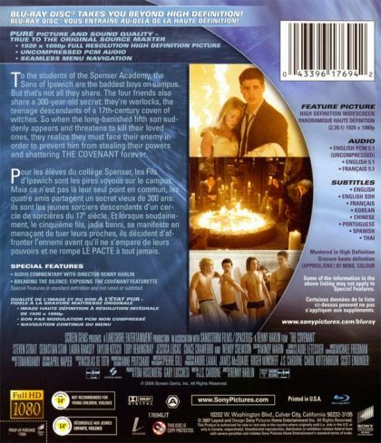 To the students of Spenser Academy, the Sons of Ipswich are the baddest boys on campus. But that`s not all they share. The four friends also share a 300-year-old secret: they`re warlocks, the teenage descendants of a 17th-century coven of witches. So when the long-banished fifth son suddenly appears and threatens to kill their loved ones, they realize they must face their enemy in order to prevent him from stealing their powers and shattering THE COVENANT forever.