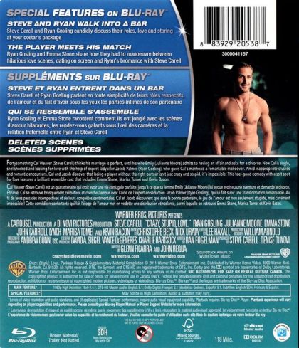 Fortysomething Cal Weaver (Steve Carell) thinks his marriage is perfect, until his wife Emily (Julianne Moore) admits to having an affair and asks for a divorce. Now Cal is single, shellshocked and looking for love with the help of expert ladykiller Jacob Palmer (Ryan Gosling), who gives Cal's manhood a remarkable makeover. Amid inappropriate crushes and romantic encounters, Cal and Jacob discover that being a player without the right partner isn't just crazy and stupid, its impossible! This feel-good comedy with a soft spot for love features a brilliant ensemble cast that includes Emma Stone, Marisa Tomei and Kevin Bacon.Cal Weaver (Steve Carell) est un quarantenaire qui croft avoir une vie conjugate parfaite, jusqu'à ce que sa femme Emily (Julianne Moore) lui avoue avoir eu une aventure et demande le divorce. Ébranlé, Cal se retrouve brusquement célibataire et cherche l'amour avec l'aide de l'expert en seduction Jacob Palmer (Ryan Gosling), qui lui fait subir une transformation remarquable. Au fil de leurs passades intempestives et de leurs conquêtes sentimentales, Cal et Jacob découvrent que sans la bonne partenaire, le jeu de l'amour est non seulement stupide, mais carrément impossible ! Cette comédie réconfortante qui fait l'éloge de l'amour met en vedette une distribution étincelante, parmi laquelle on retrouve Emma Stone, Marisa Tomei et Kevin Bacon.