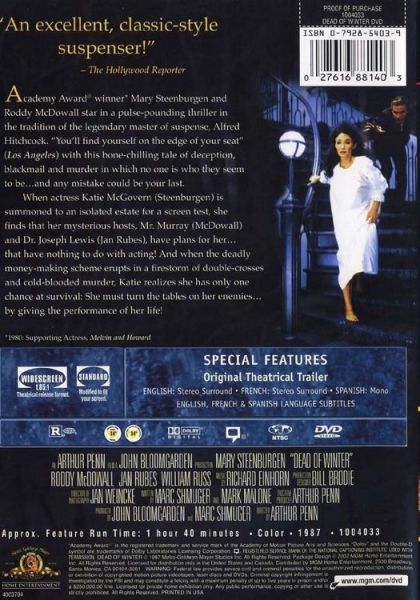 Academy Award winner Mary Steenburgen and Roddy McDowall star in a pulse-pounding thriller in the tradition of the legendary master of suspense, Alfred Hitchcock. "You'll find yourself on the edge of your seat" (Los Angeles) with this bone-chilling tale of deception, blackmail and murder in which no one is who they seem to be...and any mistake could be your last.When actress Katie McGovern (Steenburgen) is summoned to an isolated estate for a screen test, she finds that her mysterious hosts, Mr. Murray (McDowall) and Dr. Joseph Lewis (Jan Rubes), have plans for her...that have nothing to do with acting! And when the deadly money-making scheme erupts in a firestorm of double-crosses an d cold-blooded murder, Katie realizes she has only one chance at survival: She must turn the tables on her enemies...by giving the performance of her life!