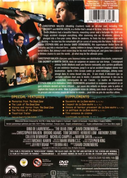 He can see theifuture. But can he escape it?Christopher Walken (Wedding Crashers) leads an all-star cast, including Tom Skerritt and Martin Sheen, in a thriller that's ahead of its time. School teacher Johnny Smith (Walken) had a beautiful fiancée, rewarding career and a fortunate life. Until one tragic accident changed everything. After slamming into an 18-wheeler, Johnny is plunged into a five-year coma. When he awakens, he finds his true collision was with destiny -- he now has the remarkable gift (or curse) of seeing into the future. From horror master Stephen King and director David Cronenberg, this supernatural thriller turns an everyday guy into a reluctant hero... saving children in danger, helping the police and capturing serial killers. But Johnny's next vision may be the most terrifying yet, and gives him a once-in-a-lifetime chance to save the world... at what my be the ultimate price.