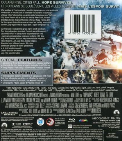 What would you do if you knew that in a handful of days an enormous comet would colide with Earth and all humanity could be annihilated? The countdown to doomsday is underway in this "gut wrenching, eye opening blast of a movie experience" (Jeff Craig, Sixty Second Preview). Mimi Leder (The Peacemaker) directs; guiding an all-start cast featuring Robert Duvail, Tea Leoni, Elijah Wood, Vanessa Redgrave, Maimilian Schell and Morgan Freeman. With the film's dynamic fusion of large-scale excitment and touching human-scale storieslines, Deep Impact makes its impact felt in a big and unforgettable way.